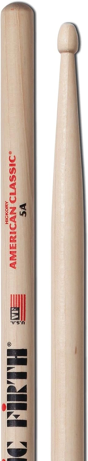 As beginners, drummers tend to take the heavier sticks, usually "Vic Firth American classics"; made of Hickory Wood which can withstand a lot of shock and last longer. "Zildjian 5A Drumsticks" is another great option mostly because of its most popular and common size. And third, the "Vater American Hickory" which is well-balanced and heavier toward the tip for fast attack and response.